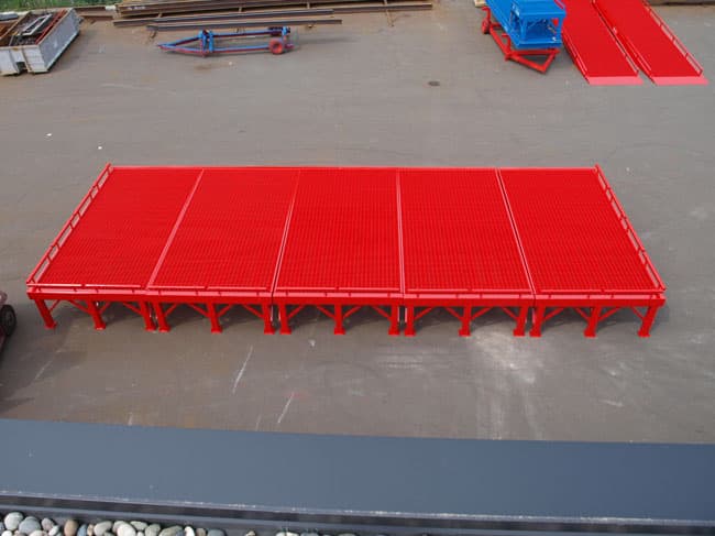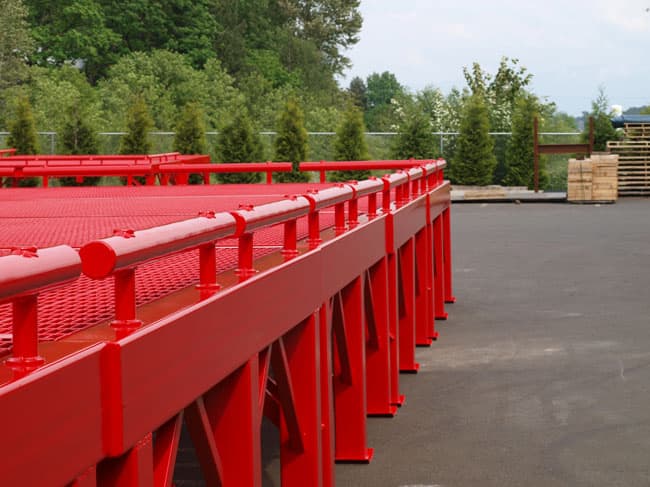 After meeting with the client and working to understand their needs in full, we were able to provide them with a sound solution. We would build two additional platforms to fit between an existing three-piece loading dock setup. When the docks are bolted together, they would create a surface large enough for two forklifts to navigate easily. A new heavy-duty removable railing system would also be implemented to allow for optimal safety while still providing quick removable functionality. These rails would be designed to slide into the sleeves that are mounted on the platform so they can be easily removed if the customer needs an additional docking area.